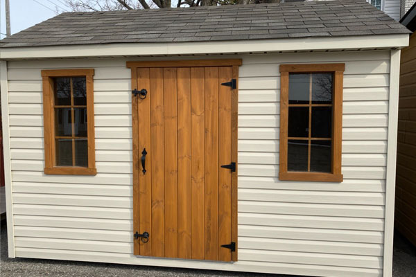 Le cabanon en bois est un modèle unique à cause de ces portes et fenêtres en bois. Il très pratique pour le rangement et solide grâce à sa construction de haute qualitée. Plusieurs choix de couleur de revêtements sont disponibles en magasin. Ce cabanon est disponible clé en main et en kit bricoleur.