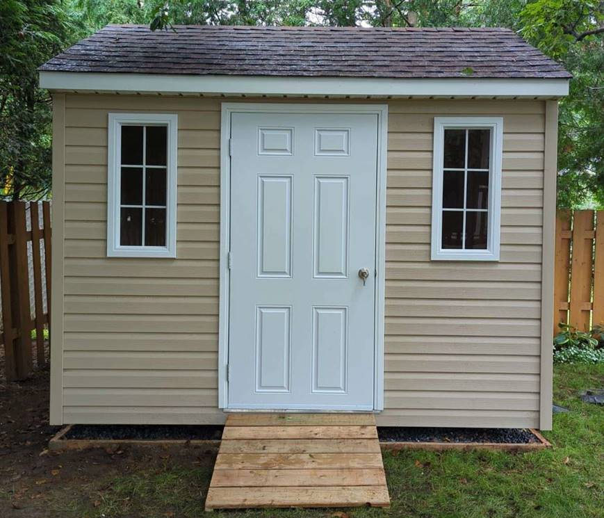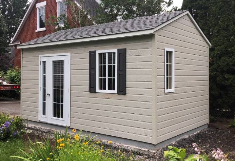 Le cabanon Prestige est pratique pour le rangement et très solide grâce à sa construction de haute qualité. Plusieurs choix de couleur de revêtements sont disponibles en magasin. Ce cabanon est disponible clé en main et en kit bricoleur.